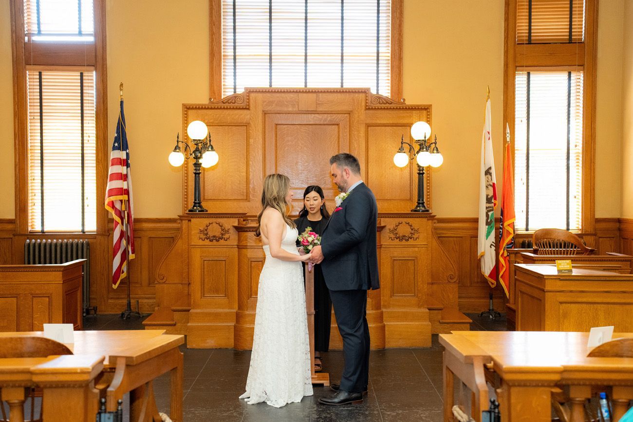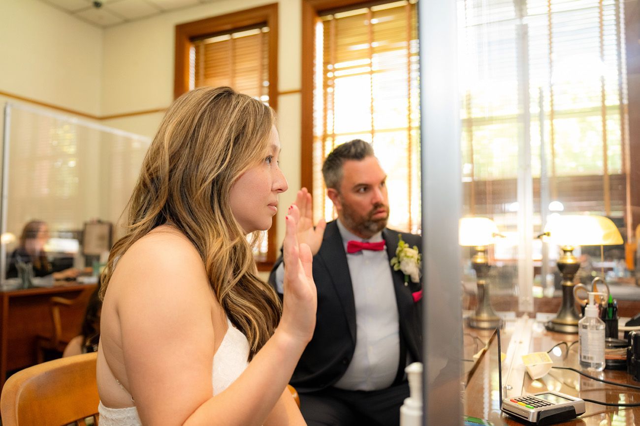 Pro Tip: If you’re bringing your own officiant, you don’t need to make a civil ceremony appointment or pay the $28 fee. But if you want a court-appointed officiant, you must pay the fee and schedule the civil ceremony for the same day you reserved the Historic Courtroom.