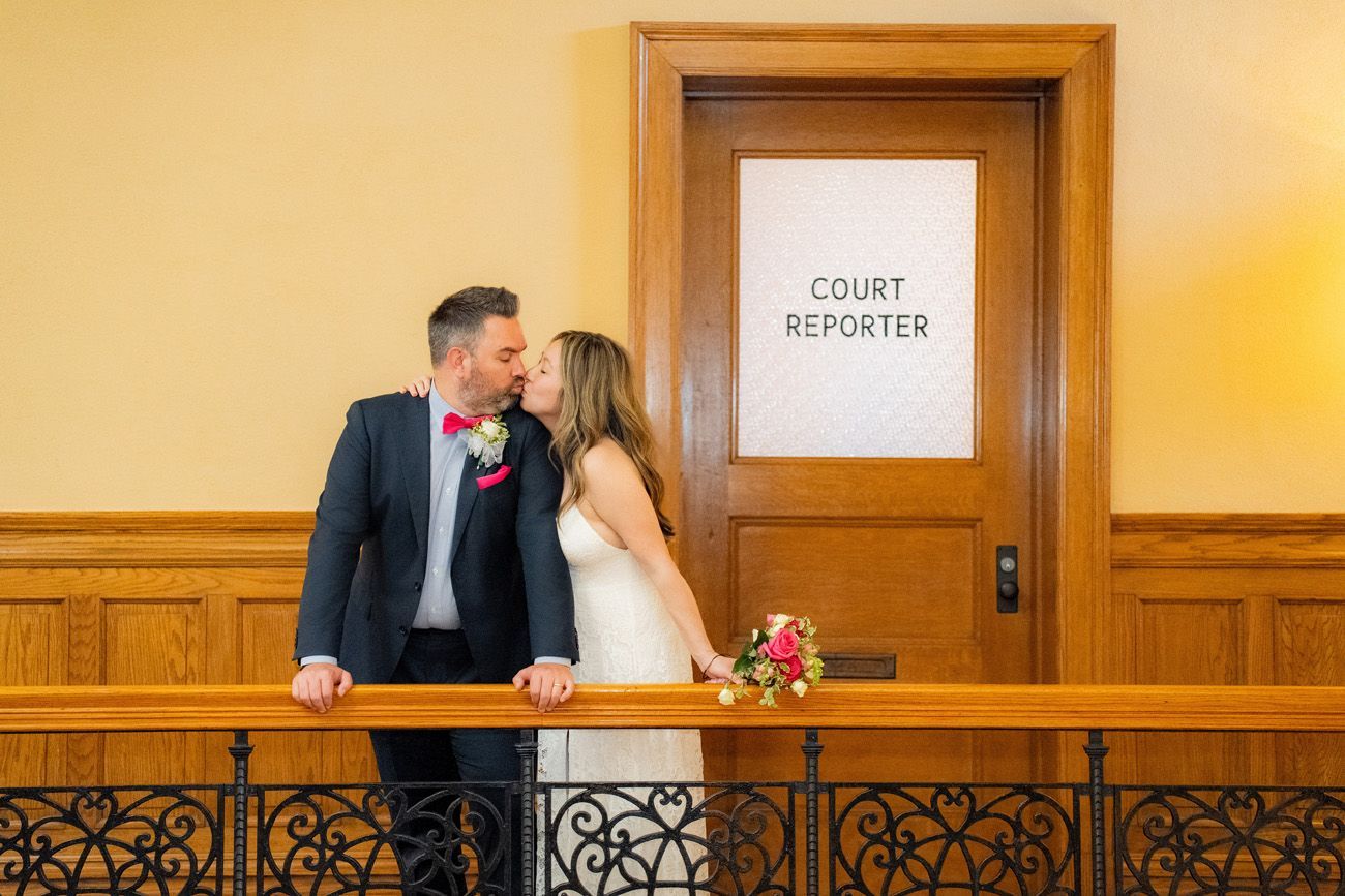Pro Tip: Even if you don’t reserve the Historic Courtroom for your ceremony, there’s still a good chance you can take photos there. As long as the room isn’t in use and the courthouse isn’t too busy. I’ve been able to bring many couples upstairs for a quick photo opportunity.